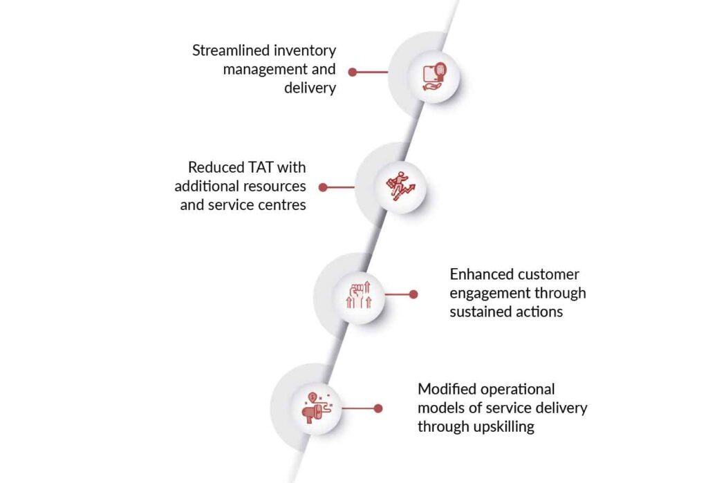 - Feedback Insights designed a customised approach addressing the nuances of customer engagement in each business unit. About 900 leaders from the customer side participated in the study, sharing their perceptions of the services. The framework and insights as defined by the EX index helped the client streamline inventory planning and channel partner logistics, reduce TAT, and improve customer engagement.