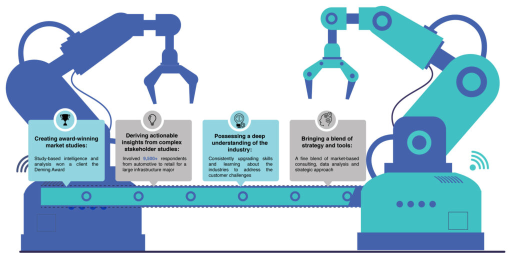 He is supported by Raja Sattanathan, market-based research and consulting expert, Shaurya Pandey, a core analyst, Nisha Singh, Arpita Patra, and Happy Sharma, research consultants with an eye for detail. They have supported clients through custom research studies, branding, and customer experience studies. Manufacturing is a vast and complex industry with differing nuances across sectors. What helps this team navigate this range of business context is the reliance on each one’s expertise, dedicated approaches, diligent teamwork, and Kaarthik’s calm-in-the-storm outlook.