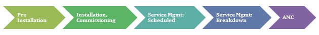 - Service Management (Scheduled): The third stage deals with the warranty period and scheduling the preventive maintenance activities. Typical activities include the first/scheduled service calls, return and replacement (If applicable) and training.