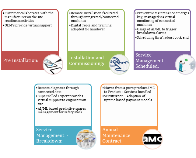 - Trend 2- Remote services of ‘installation’ and ‘breakdown resolution’ along with accelerated technology adoption for real-time access to machine data.