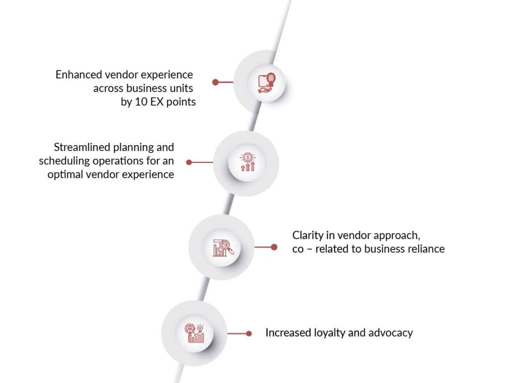 - A leading auto component major wanted to streamline and strengthen supply chain by ensuring optimal vendor experience. The study was geared to assess the health of the relationship and ascertain the level of expectations among the identified vendors. The company desired that their key unhappy vendors’ experience moved positively (from breakaway cohort to core cohort) with an overall improvement in scores.