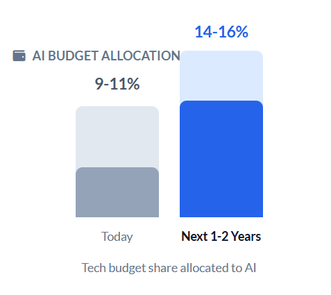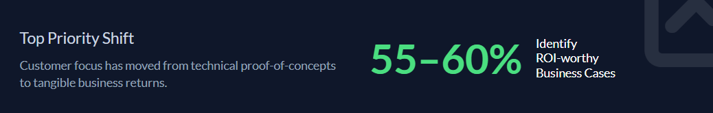 The mood is shifting from technology to business. In our surveys, 55–60% now say identifying ROI-worthy business use cases is their top priority, compared to 50% focusing on technology use cases and PoCs 1–2 years ago.
